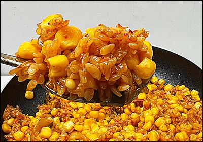 ③ 밥 투입 & 고춧가루 추가