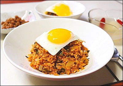 - 맵고 짠 김치볶음밥에는 부드럽고 담백한 반찬이 잘 어울립니다.