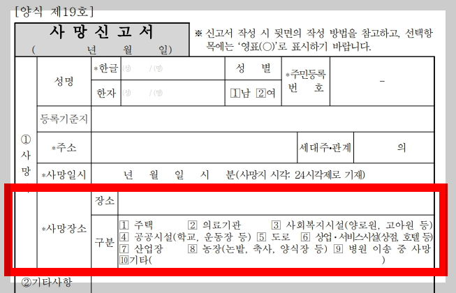 2. 사망장소 기재
