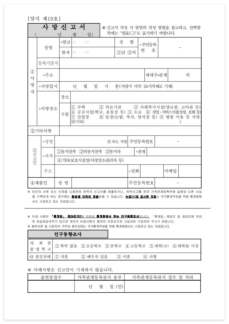 사망신고서 기재 시 유의사항