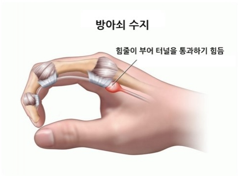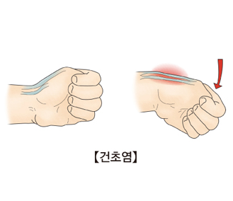 손가락 힘줄을 둘러싼 얇은 막(건초)에 염증이 발생하는 질환입니다.