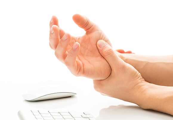손가락을 움직이는 힘줄이 두꺼워져 손을 구부리거나 펼 때 ‘딸깍’ 소리와 함께 통증이 발생합니다.