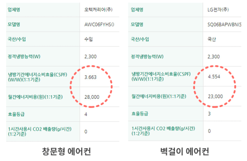 에너지 공단 자료에 따르면, 동일한 시간을 사용했을때 창문형 에어컨의 월 전기 요금은 약 19,000~32,000원, 벽걸이 에어컨은 약 18,000~29,000원으로 나타났습니다.