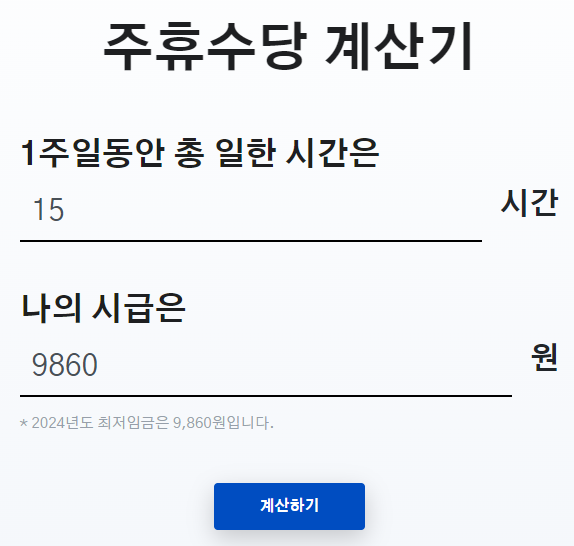 3. 주휴수당 - 산출된 주휴시간 × 시급으로 계산하며, 이를 주급에 합산합니다.