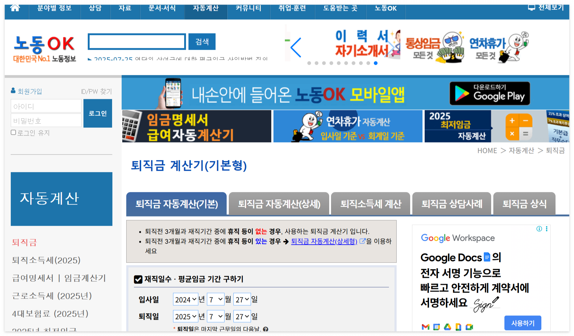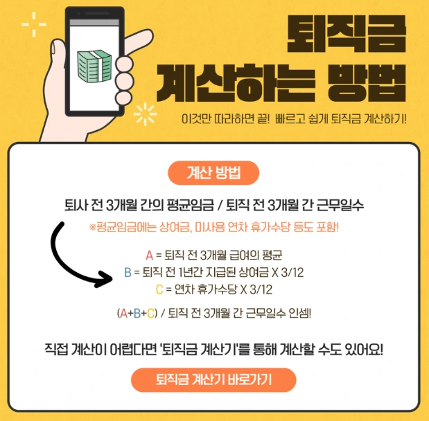 퇴직금 계산은 직접 수식으로 할 수도 있지만, 온라인 계산기를 활용하면 훨씬 간편하게 확인할 수 있습니다.