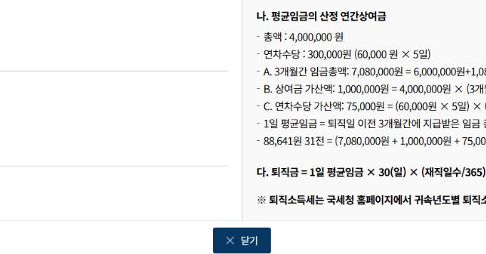퇴직금 계산기는 아래 사이트들을 참고해 보시기 바랍니다.