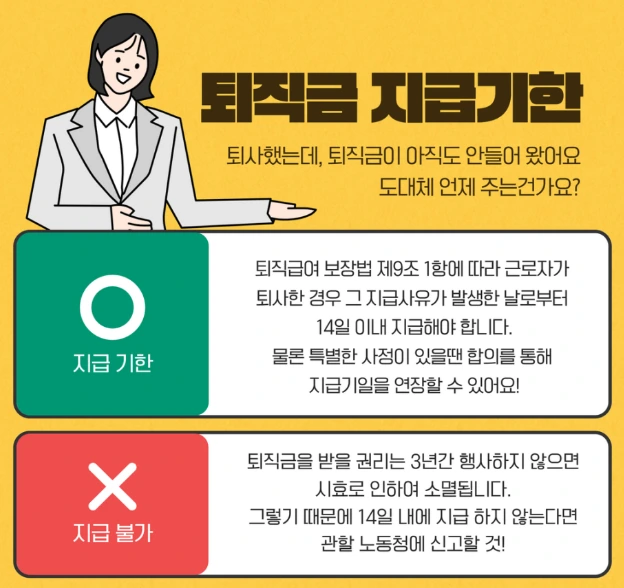 퇴직금 지급 기한 : 최대 14일 내 지급