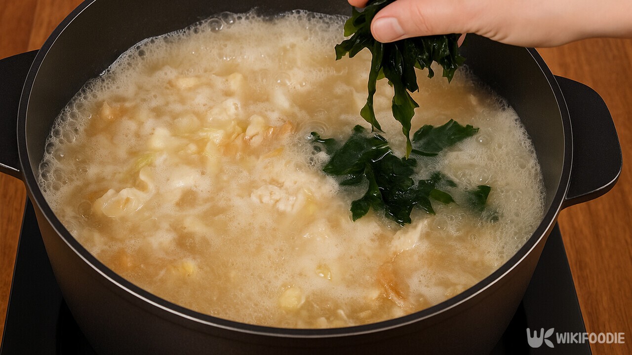 마지막에는 계란을 풀어 넣고 대파를 넣어 한소끔 끓이면 됩니다. 계란은 한 번에 붓고 크게 저으면 국물이 탁해질 수 있으니 가장자리부터 천천히 둘러 넣는 식으로 넣어주면 한결 깔끔하게 완성됩니다.